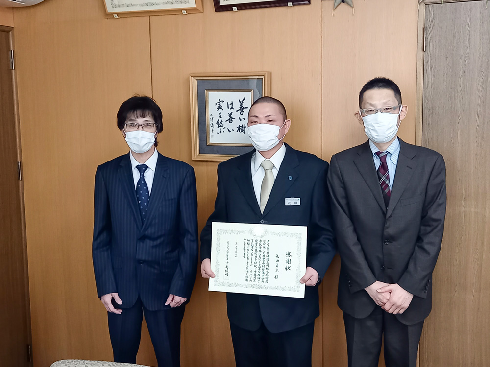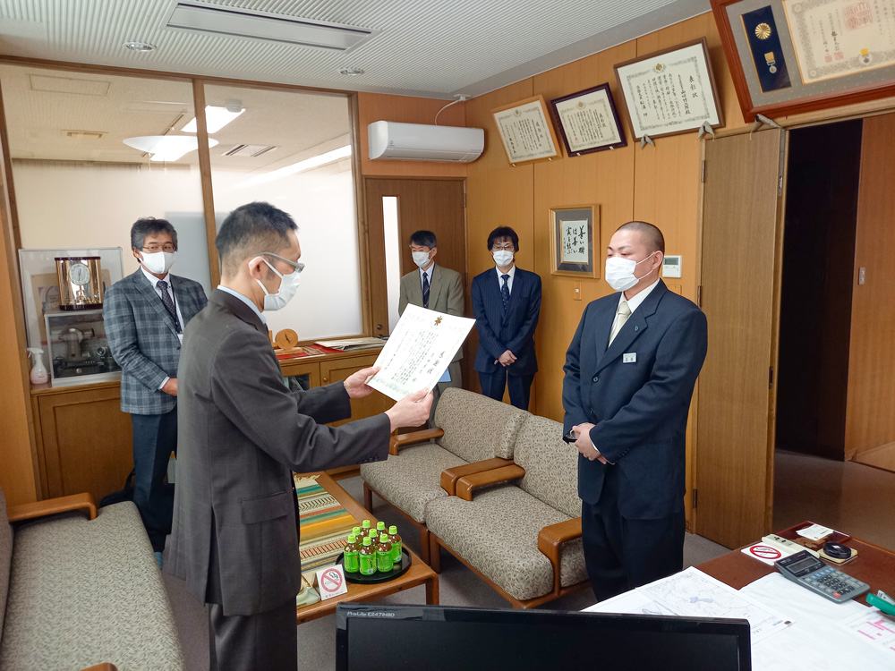 3月2日、佐々木産業振興部長に当社までお越しいただき、上川総合振興局長からの感謝状を贈呈されました。